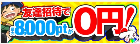 友達が初めてポイントを購入すると、さらに最大2500ポイントがプレゼントされます。