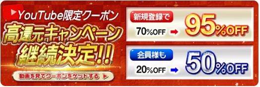 公式youtubeでは期間限定で割引クーポンを配布中!