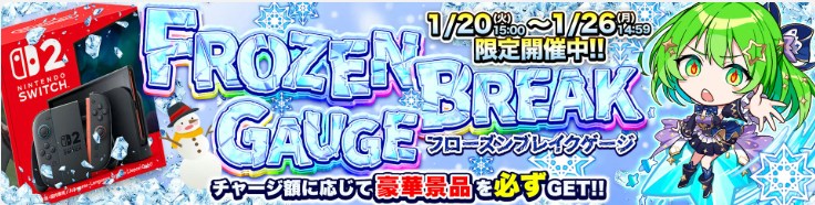 課金総額に応じて景品が段階的に追加される「FROZEN BREAK GAUGE」を開催。一定額ごとに“必ずGET”できる仕組みで、上位には高額景品も用意されています。