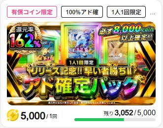 つまり、あなたが有償ポイントでアド確定パックを買い、運良くポイント以上のコインを得たとしても、その増えたコインで再度「有償限定パック」を買うことはできません。
