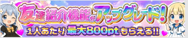 最大2600pt/人 | ・友達が初回課金 ・友達が累計10000円課金 |