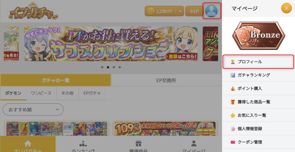 イブガチャは、スマホやPCから24時間いつでも楽しめるオンラインオリパサービスです。