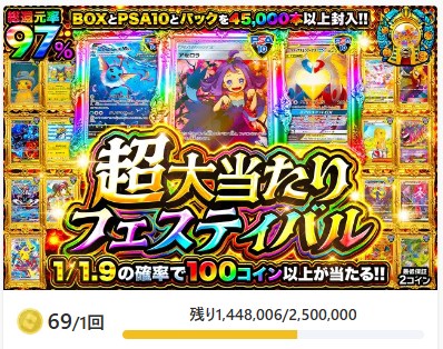 PSAや高額カード狙いなら中~高額ガチャのにぶいち/確定オリパです。