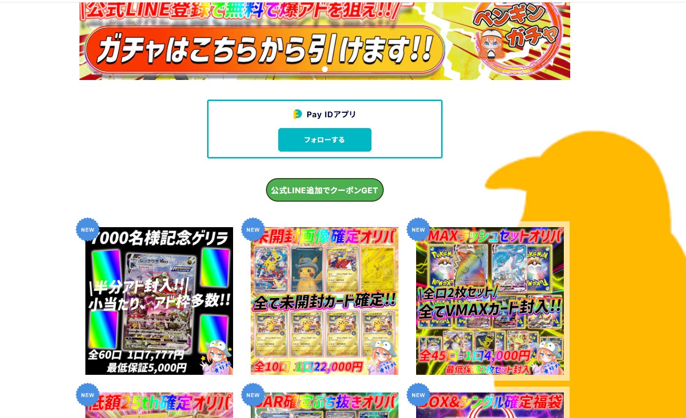 ペンギンオリパは、初心者からコレクターまで幅広いユーザーに人気のオンラインオリパサイトです。