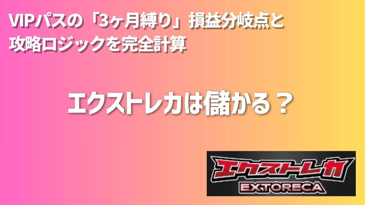さて、ここからが本題です。エクストレカ最大の攻略要素であり、同時に最大のリスク要因でもある「VIPパス」について、数字で解剖します。